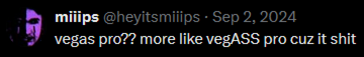 on top of that, vegas pro doesn't like any file that comes out of obs. i don't know if it's how the footage is encoded or what, but whether it be raw mkvs or remuxed mp4s, vegas pro struggles to even play the unedited footage back without chugging. it's like a child that's been spoiled on fast-food shadowplay recordings and refuses to consider anything else. it's a real shame considering that recording in obs should make things easier for me.